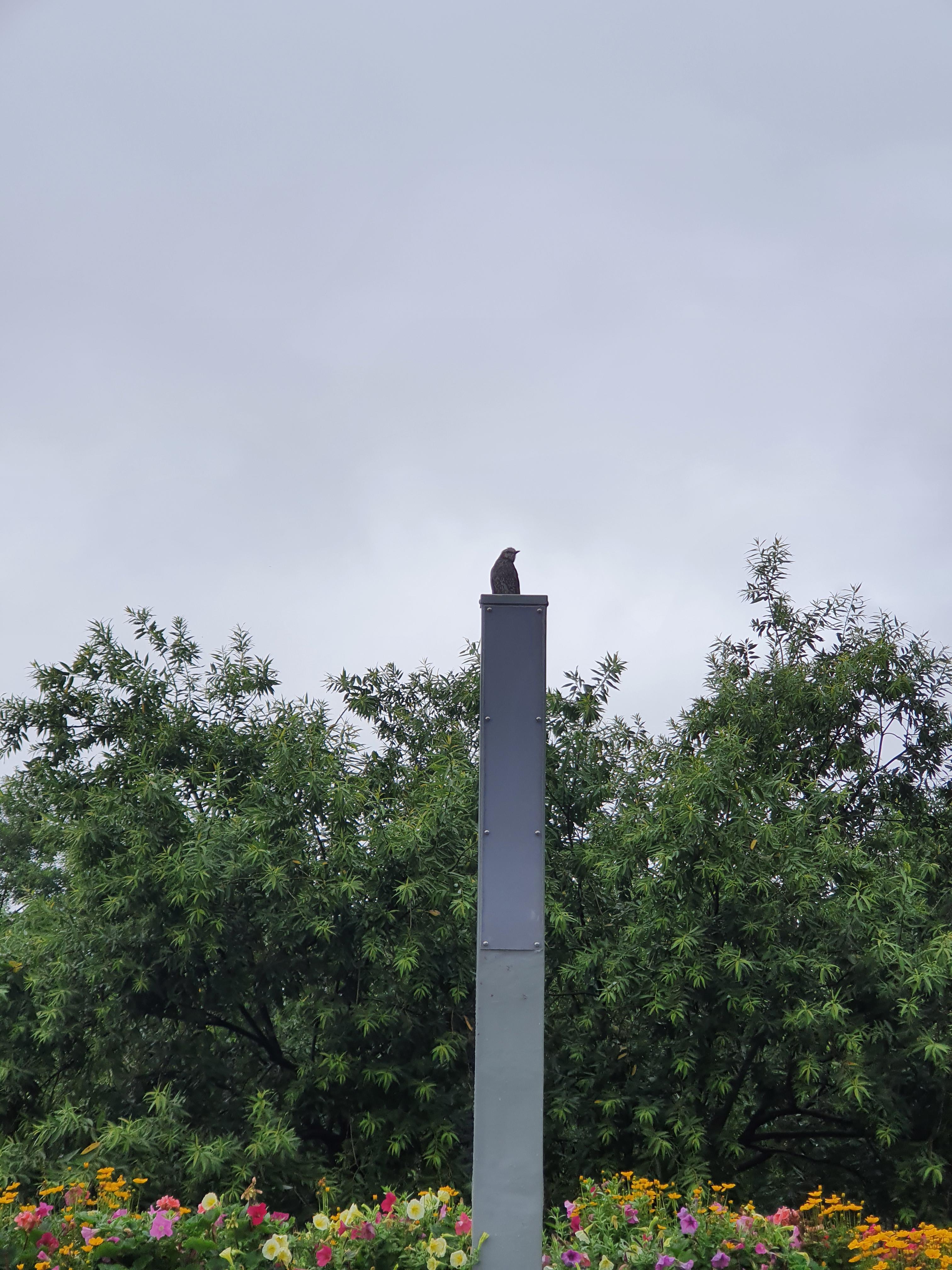 처음보는 새였는데 이름은 잘 모르겠다. 꽃과 어우려져서 주인공처럼 나왔다. 녹색과 약간의 흐린 하늘과 알록달록한 여러 종류의 꽃이 잘 어울린다.