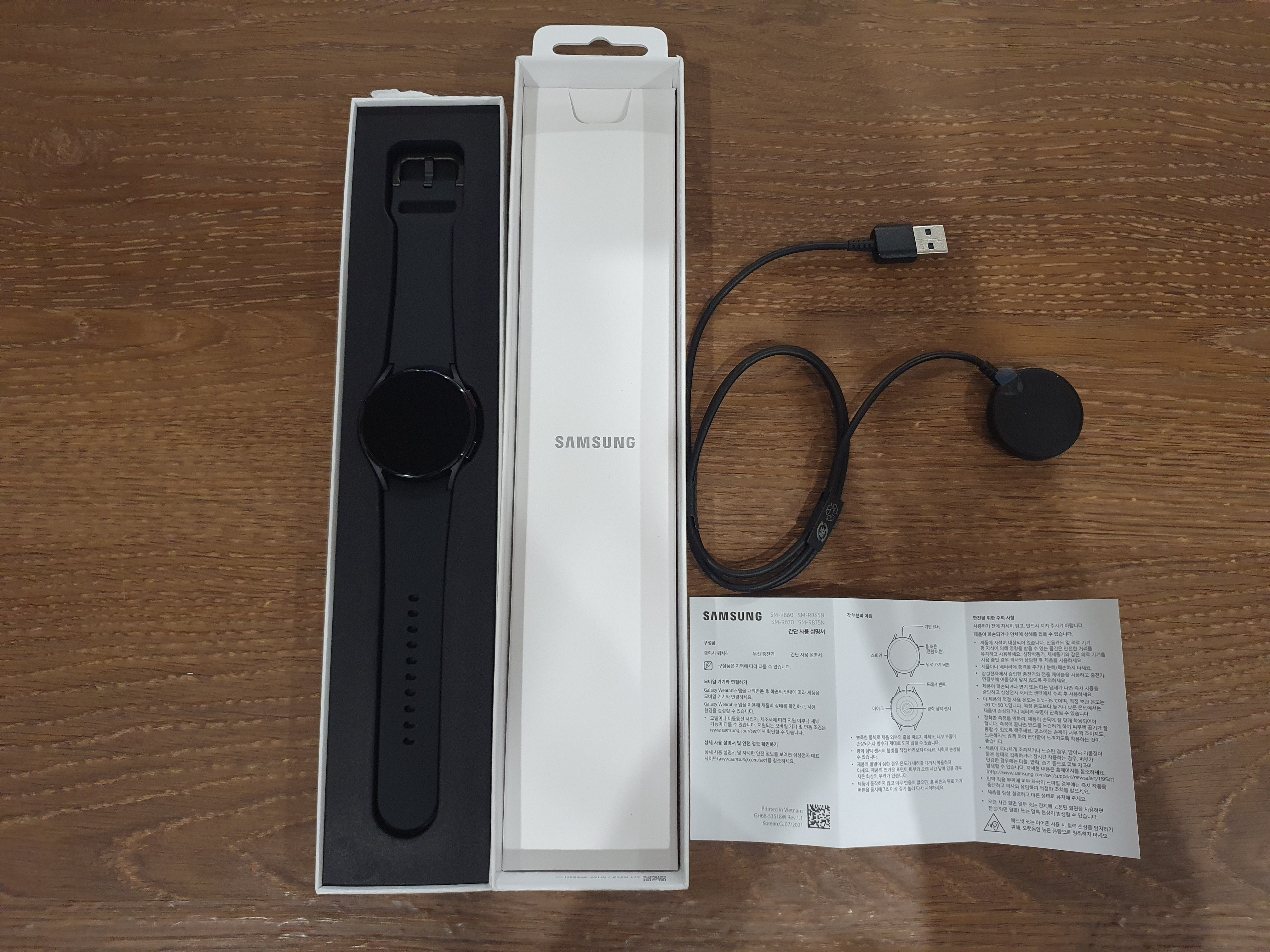 워치, 충전기, 설명서로 간단하게 구성되어 있다.
