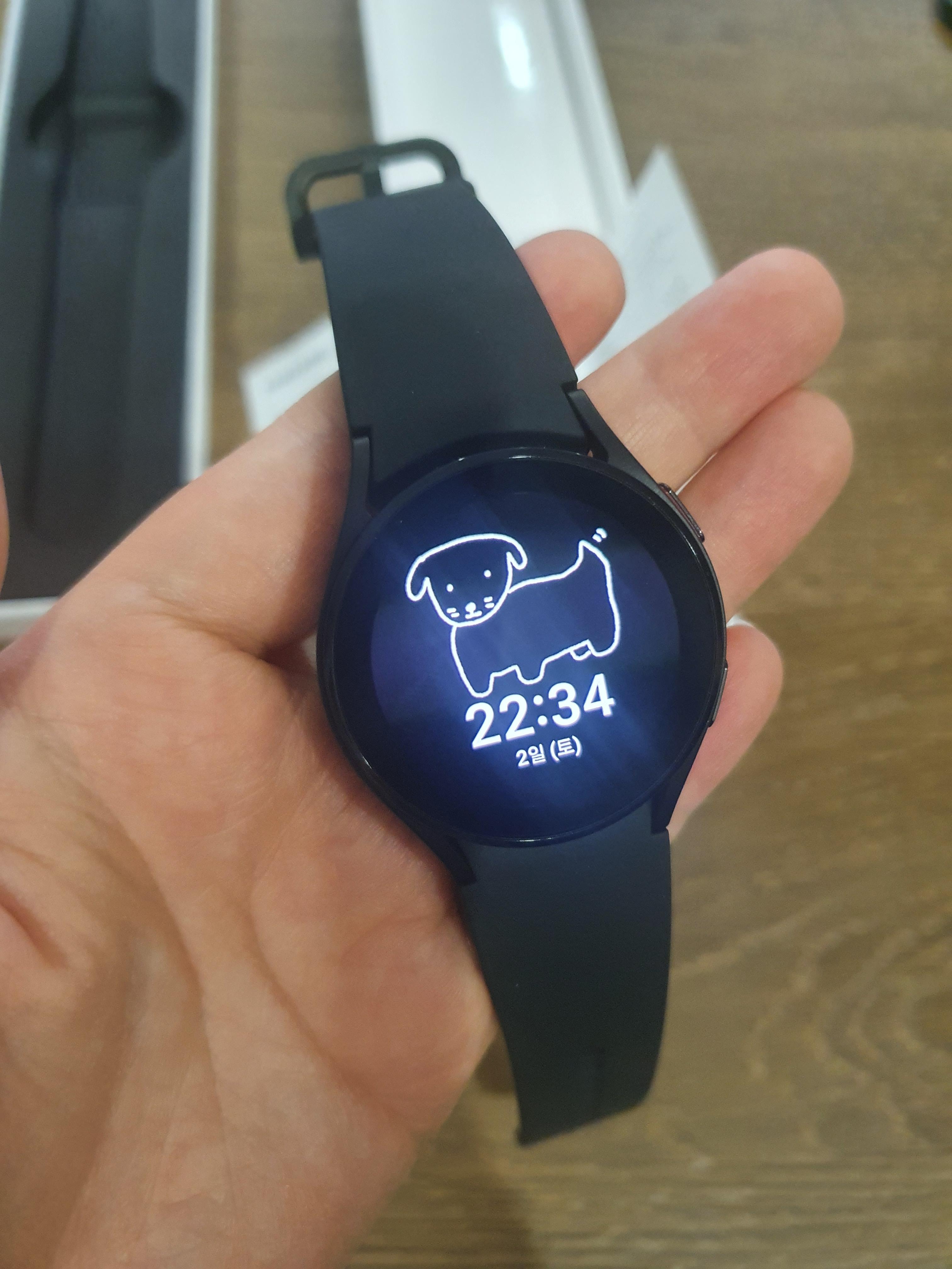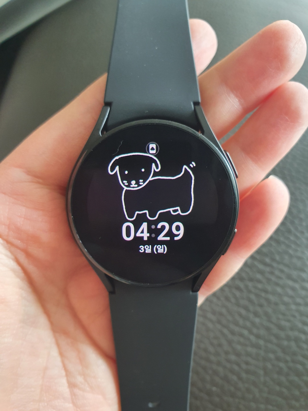 테스트용 멍뭉이를 그려서 남편 시계에 얹어보았다.
