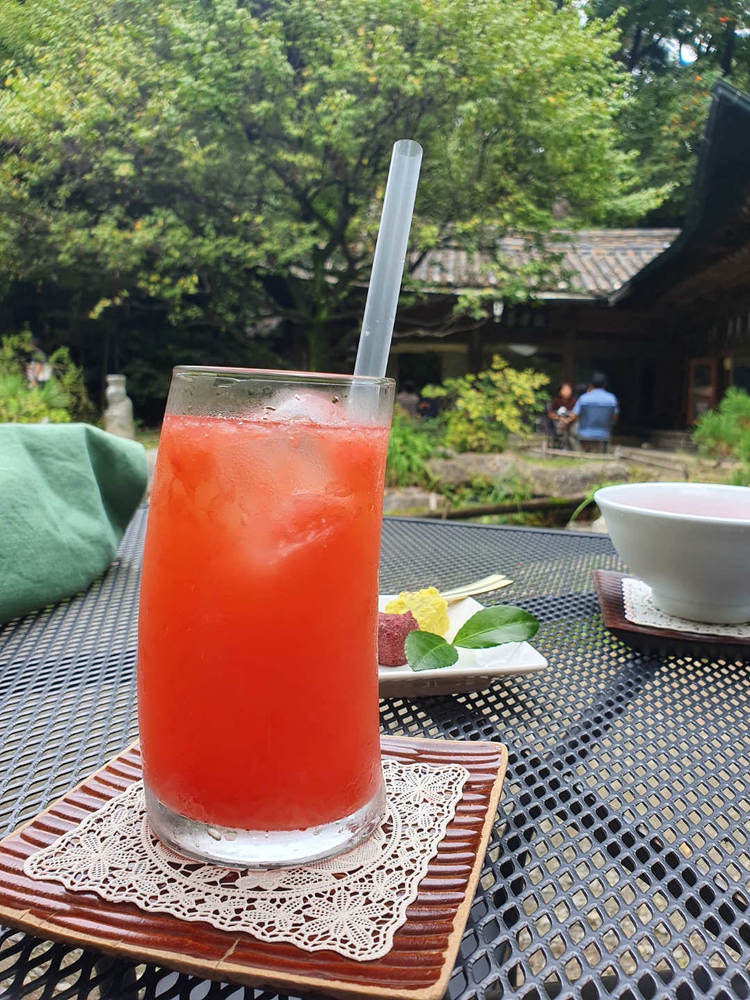 남편과 나는 자몽주스, 냉오미자차, 경단세트를 주문하였다.