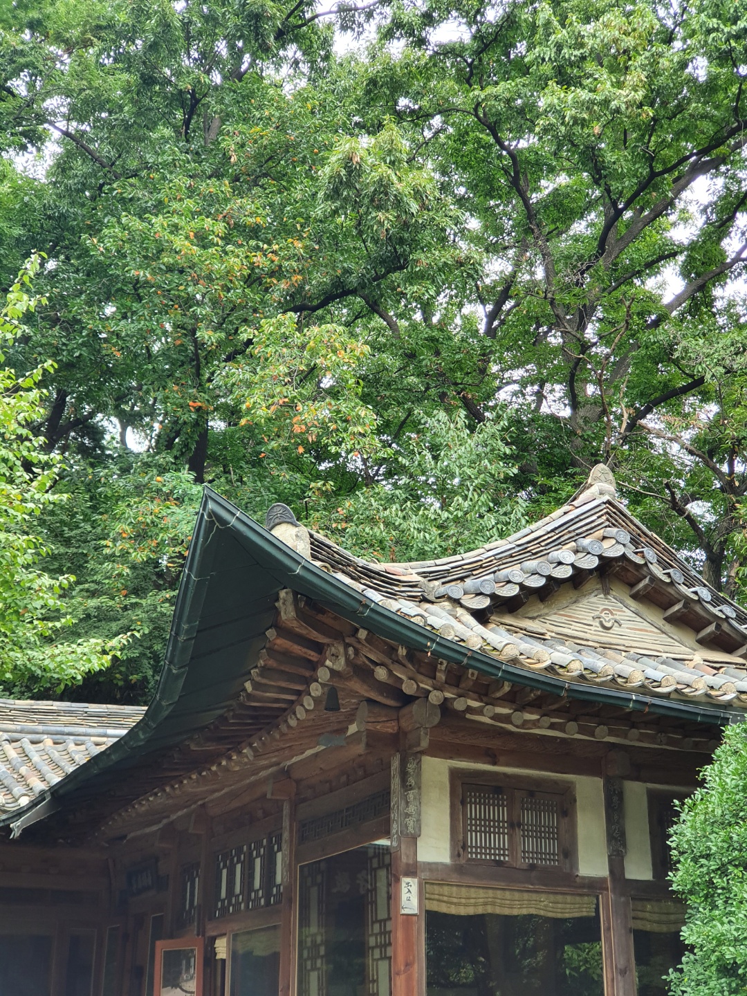 연못 근처 테이블에 자리를 잡고, 책도 좀 읽다가, 한옥, 나무들, 연못 멍하니 바라보았다.
