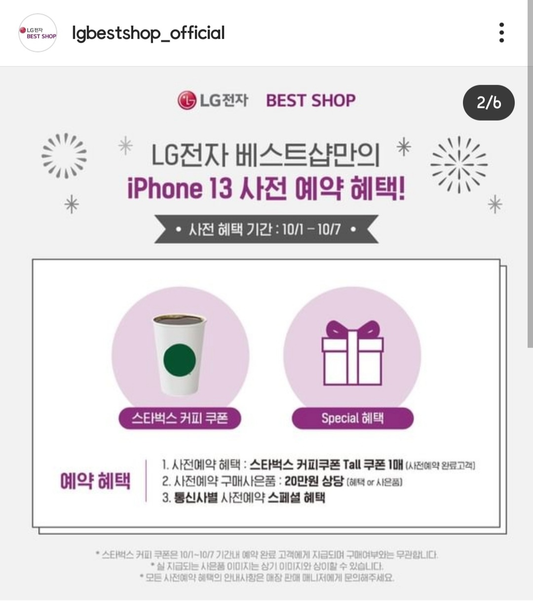 4. 최종 구매처 : LG 베스트샵 아이폰 사전예약 (아래 인스타그램 캡쳐 참고)