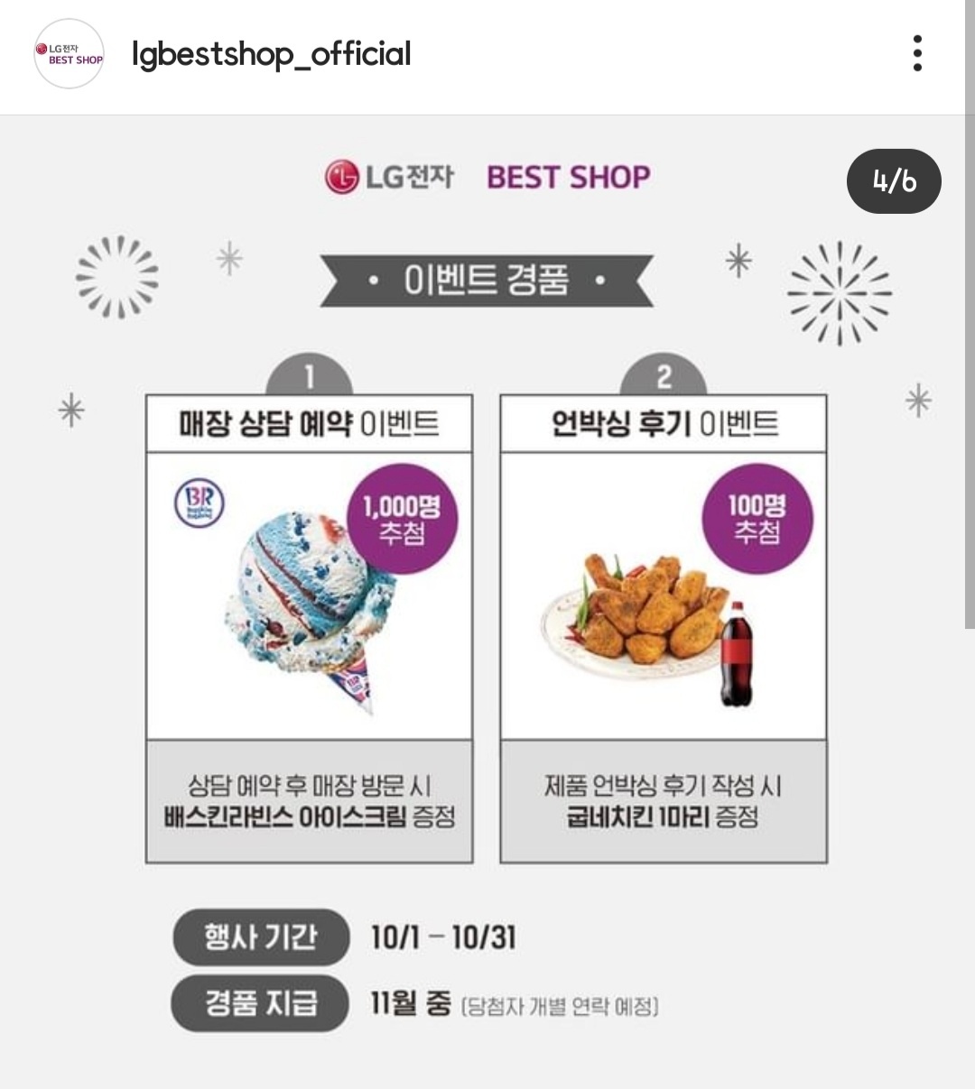배스킨라빈스, 굽네치킨 (경품으로 당첨자에게 지급 진행)