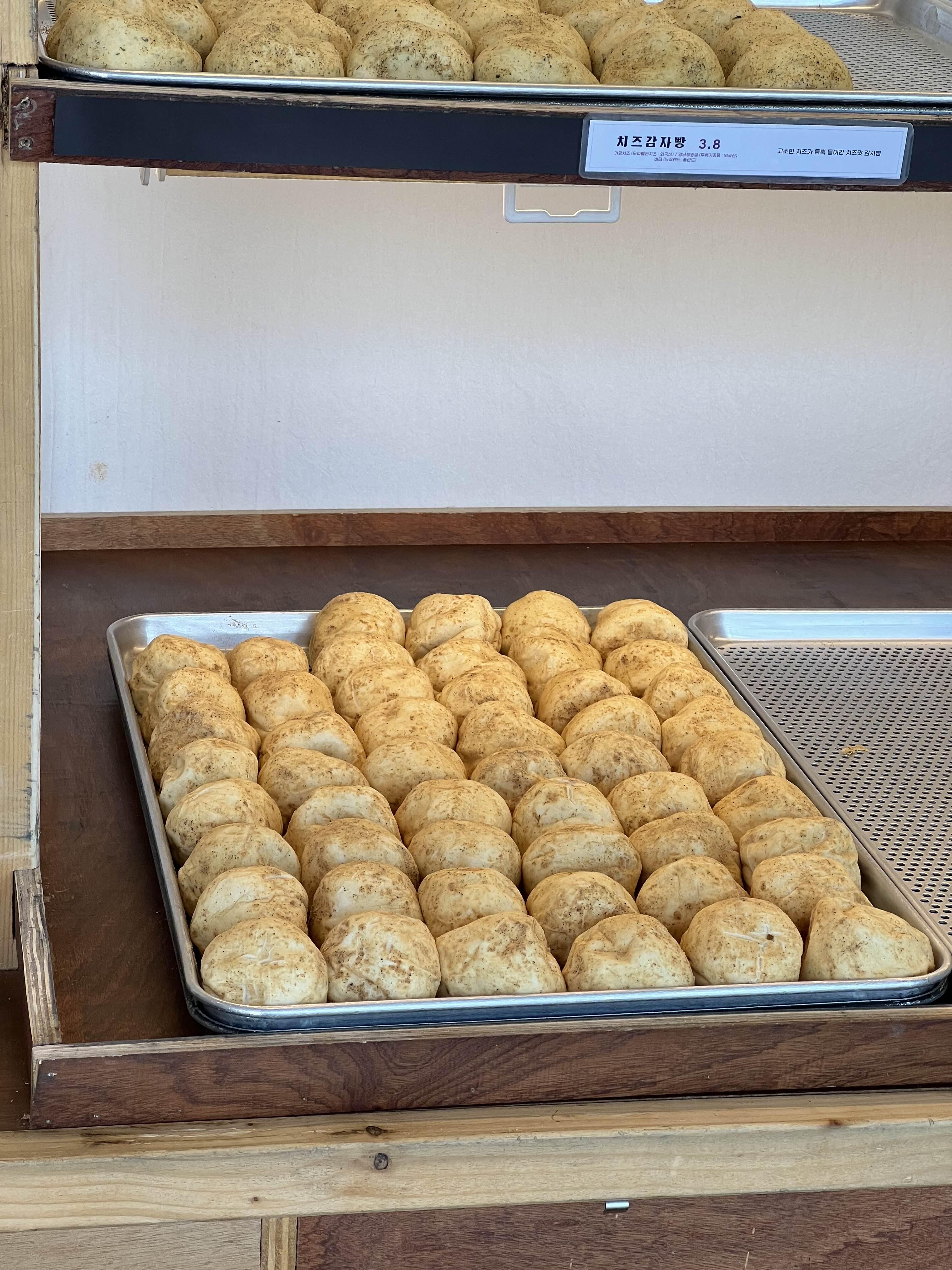 치즈감자빵은 뜨끈한채로 앉은자리에서 먹어보았다. 쭉쭉 늘어나는 치즈가 맛있고 처음먹어보는 맛에 놀란다.