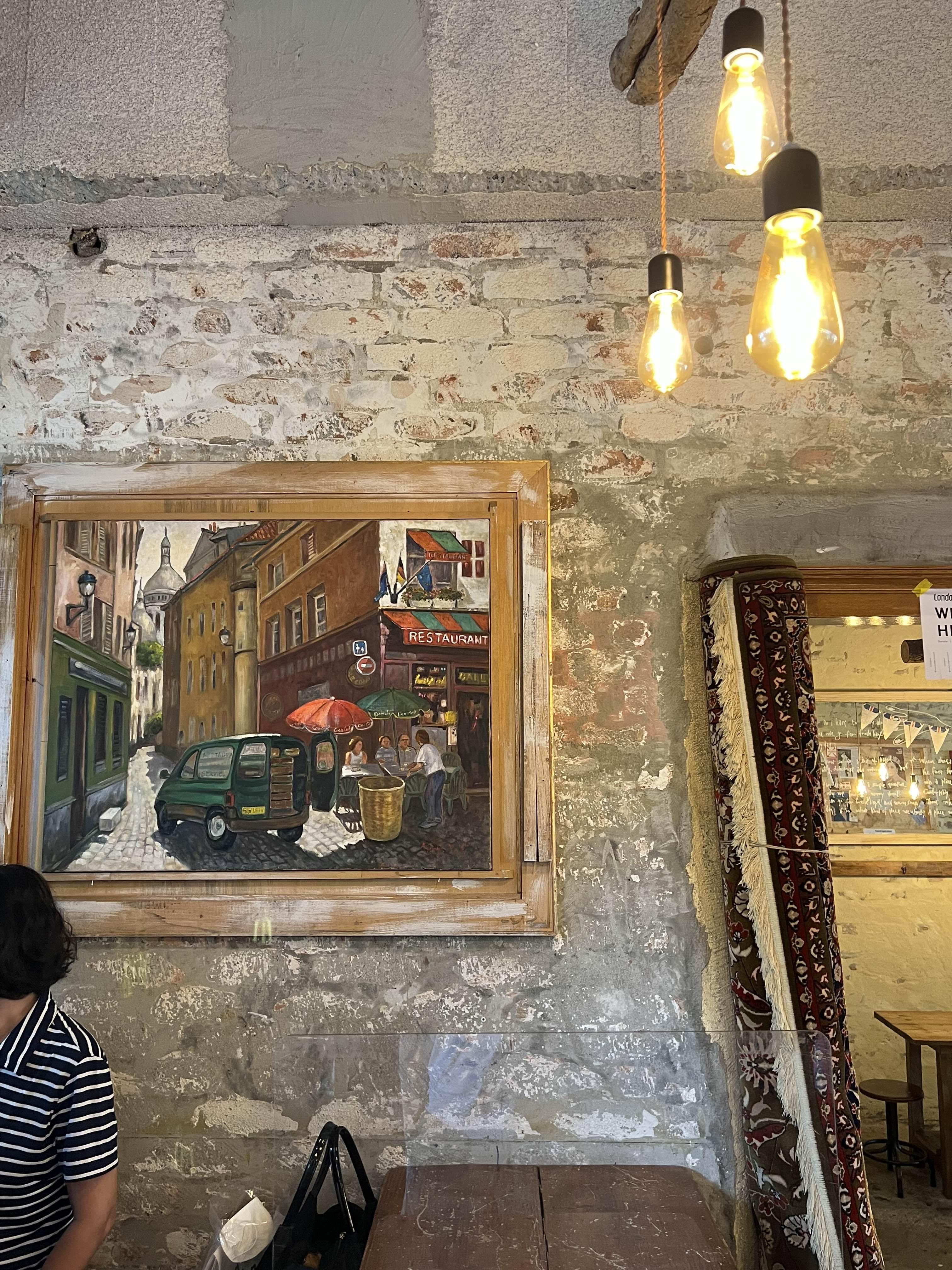 베이글, 홈메이드 수프, 샌드위치, 커피를 파는 카페.