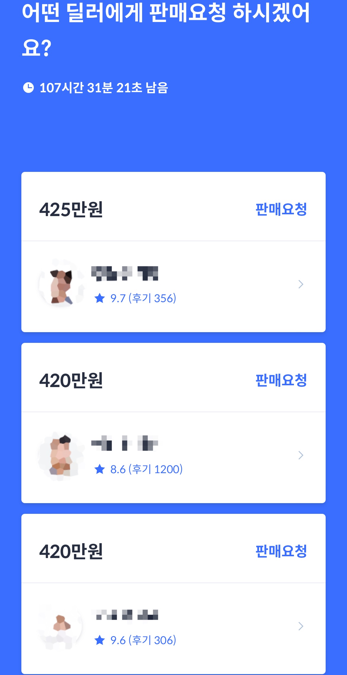 딜러가 제시한 가격으로 판매자가 동의하는 가격인 경우 판매가 이뤄지게된다.