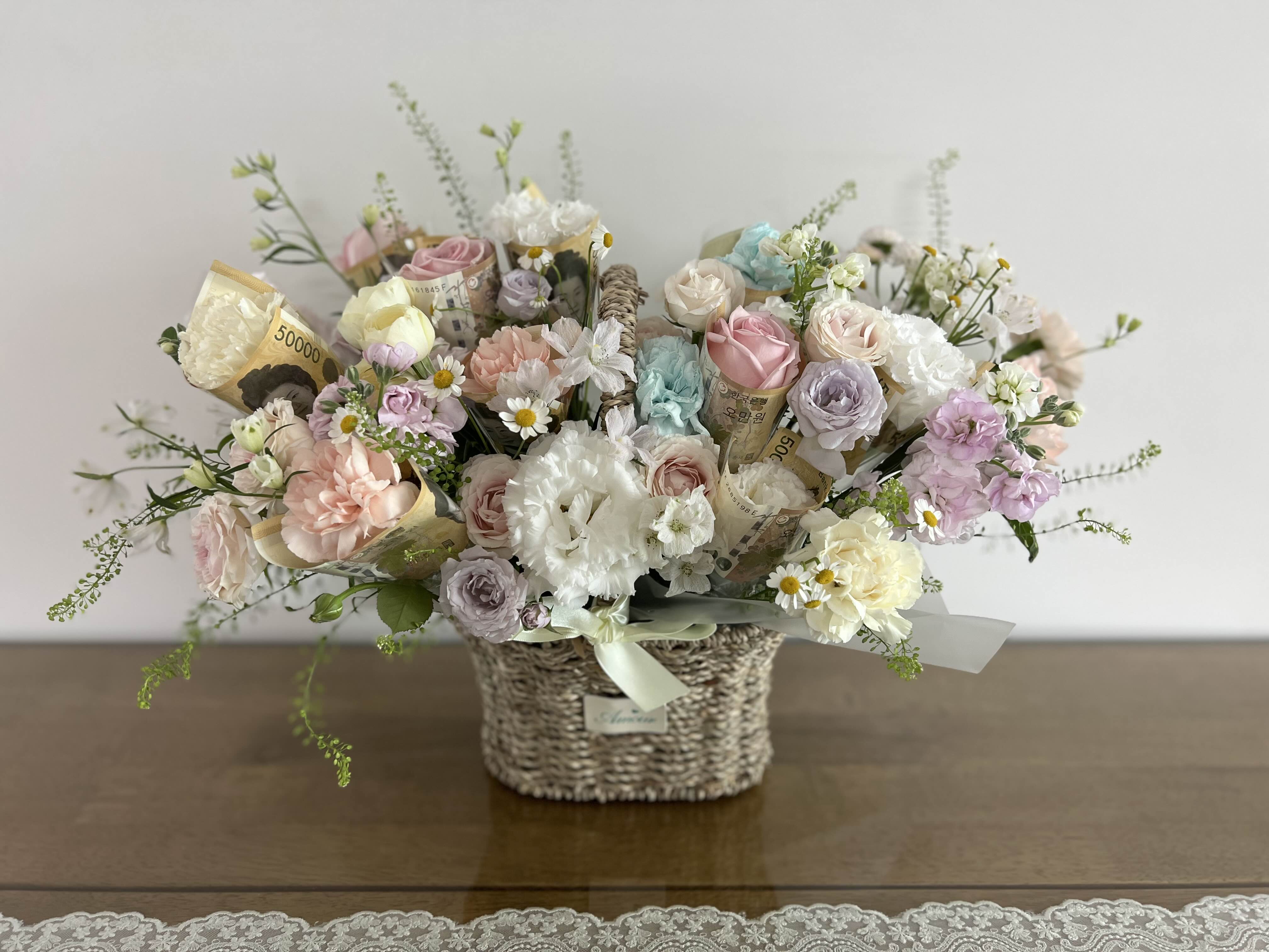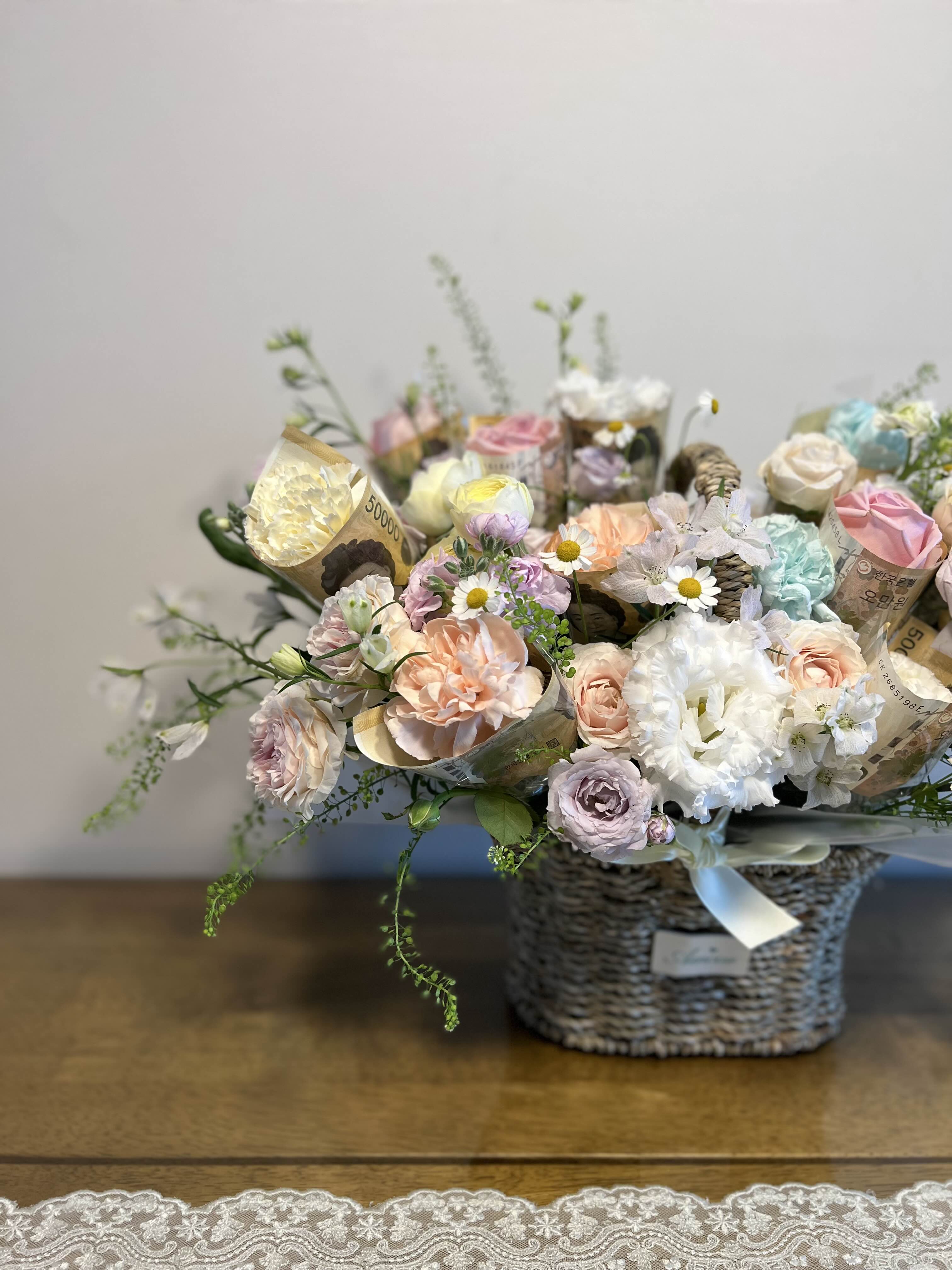 올해는 마침 양가 부모님의 칠순이라 돈꽃다발을 준비해보았는데 꽃이 아름다워 사진을 남겨본다.