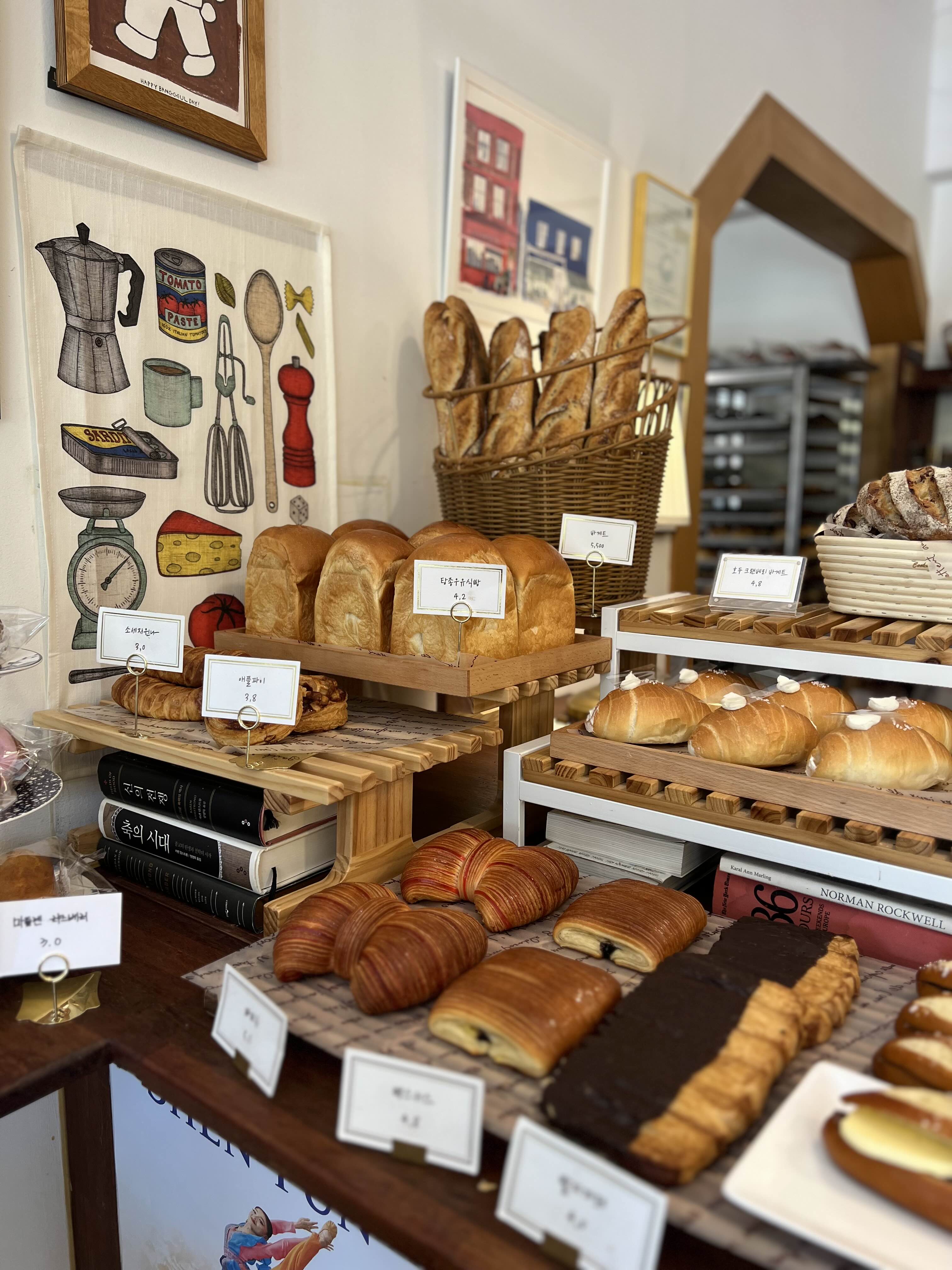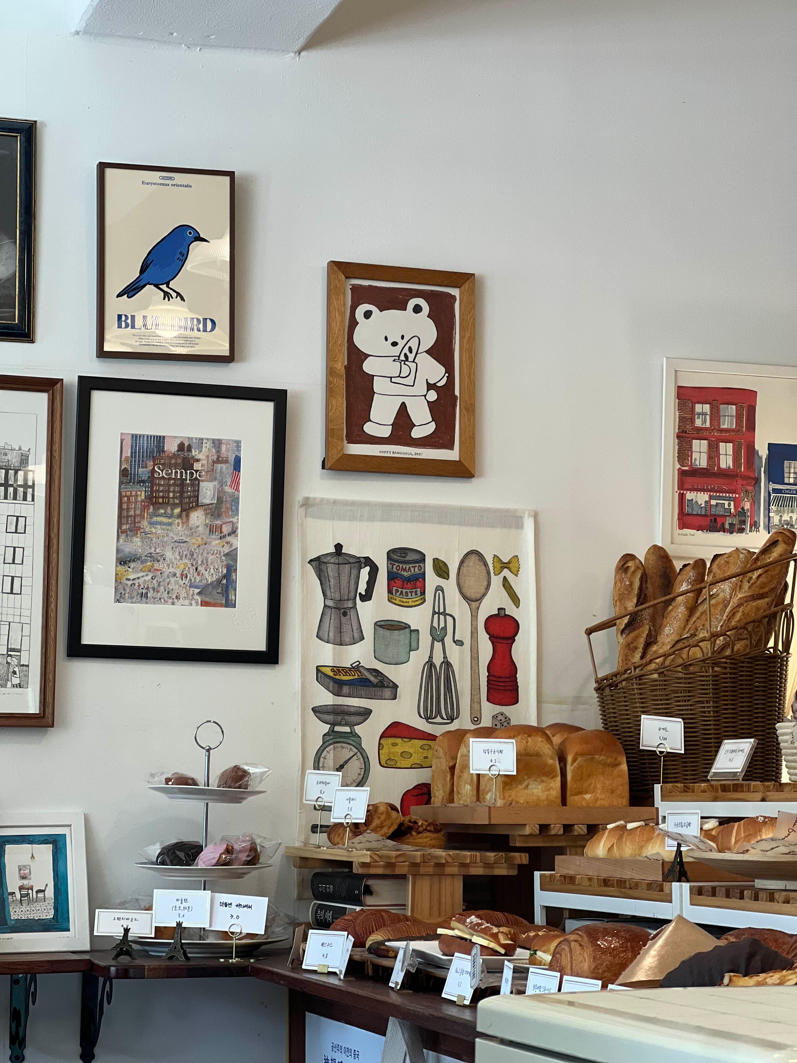 1호점에 비해 조금 더 단정한 인상이다. 정갈하게 정리된 빵들(하지만 바깥 공기에 노출되어있음), 요즘 카페스러운 인테리어 감각 새빨간 커피잔과 프릳츠커피.