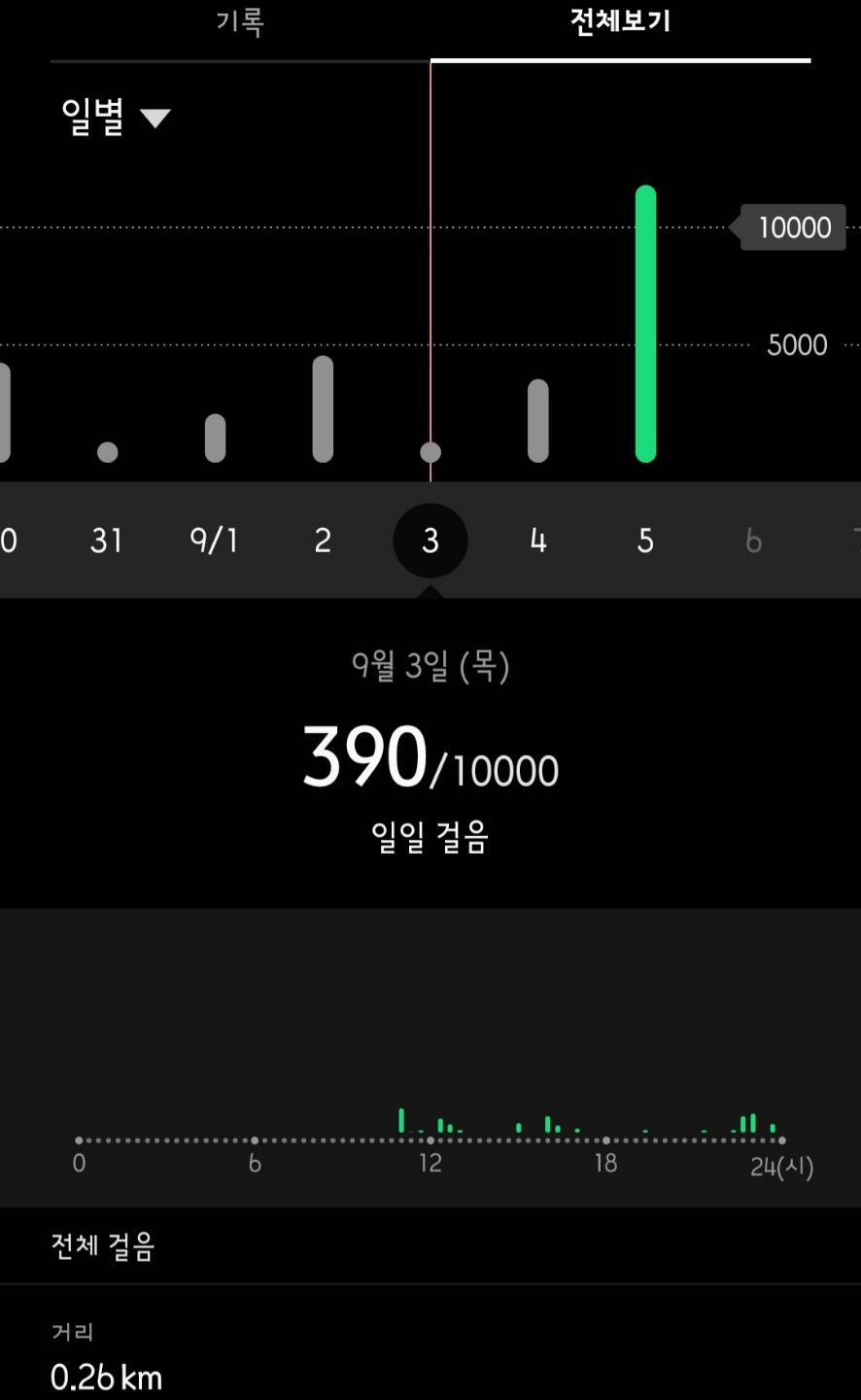 아래는 재택근무였던 지난 주 나의 걷기 기록이다.
