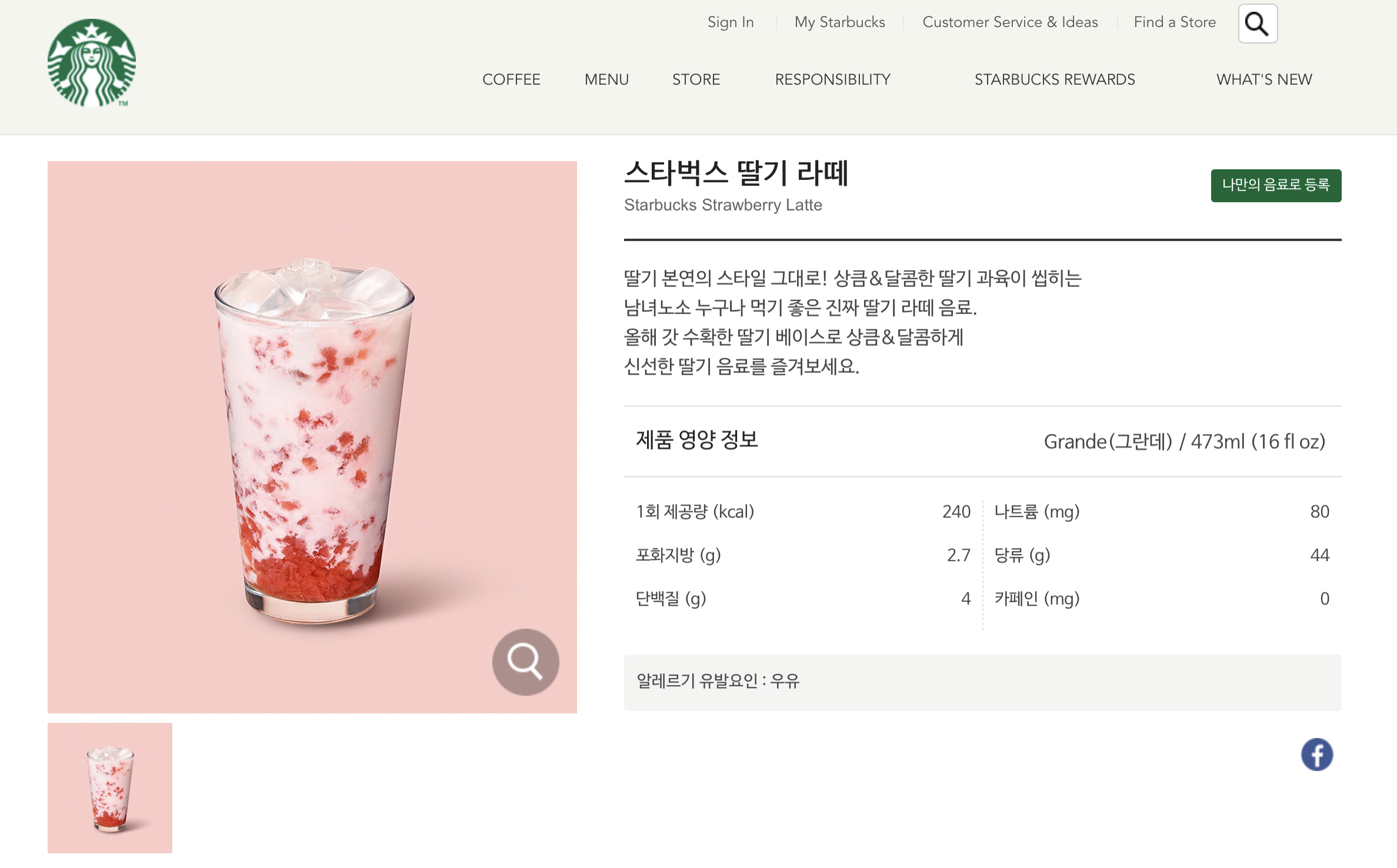 스타벅스에서도 계절 메뉴로 겨울에 딸기 라떼를 출시했는데. 하우스 재배 이후 제철을 잃은 과일이 되었다지.