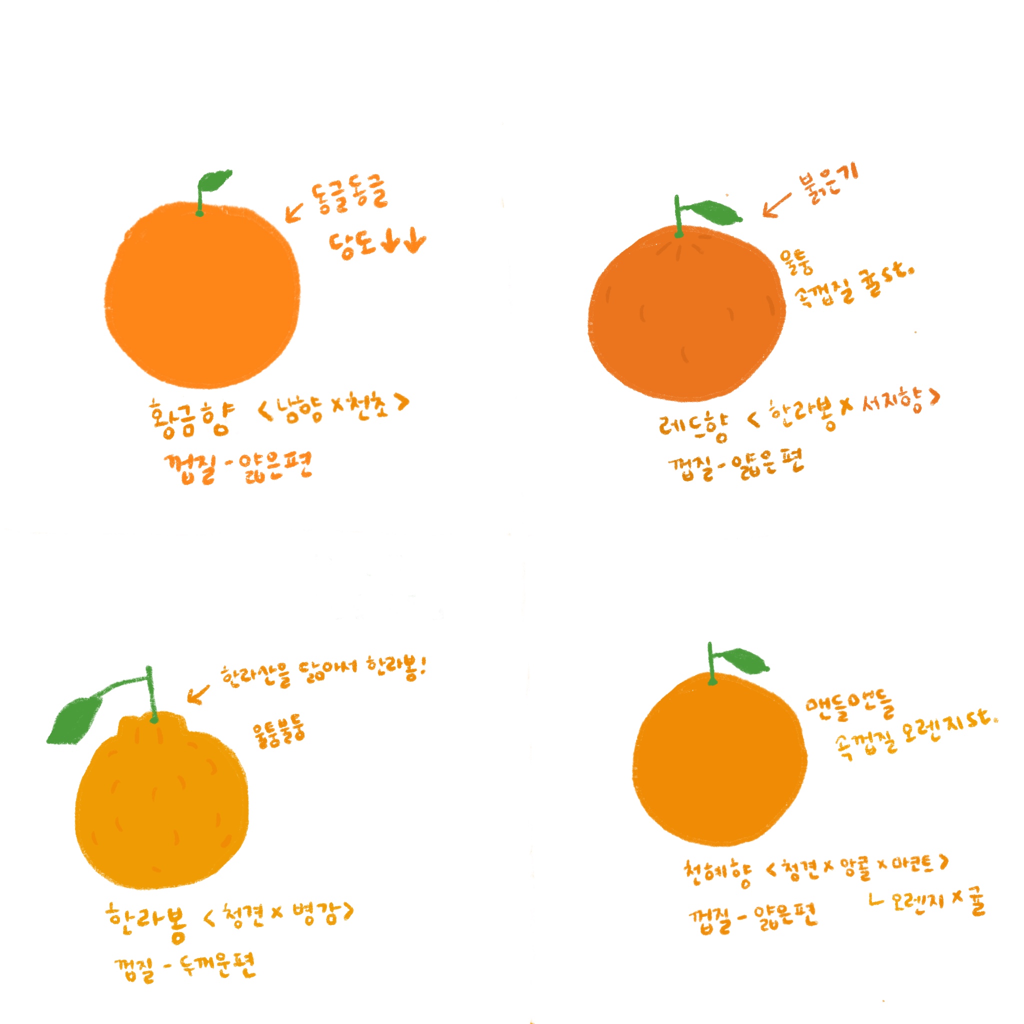레드향, 천혜향, 황금향, 한라봉 차이점을 비교해보았다.