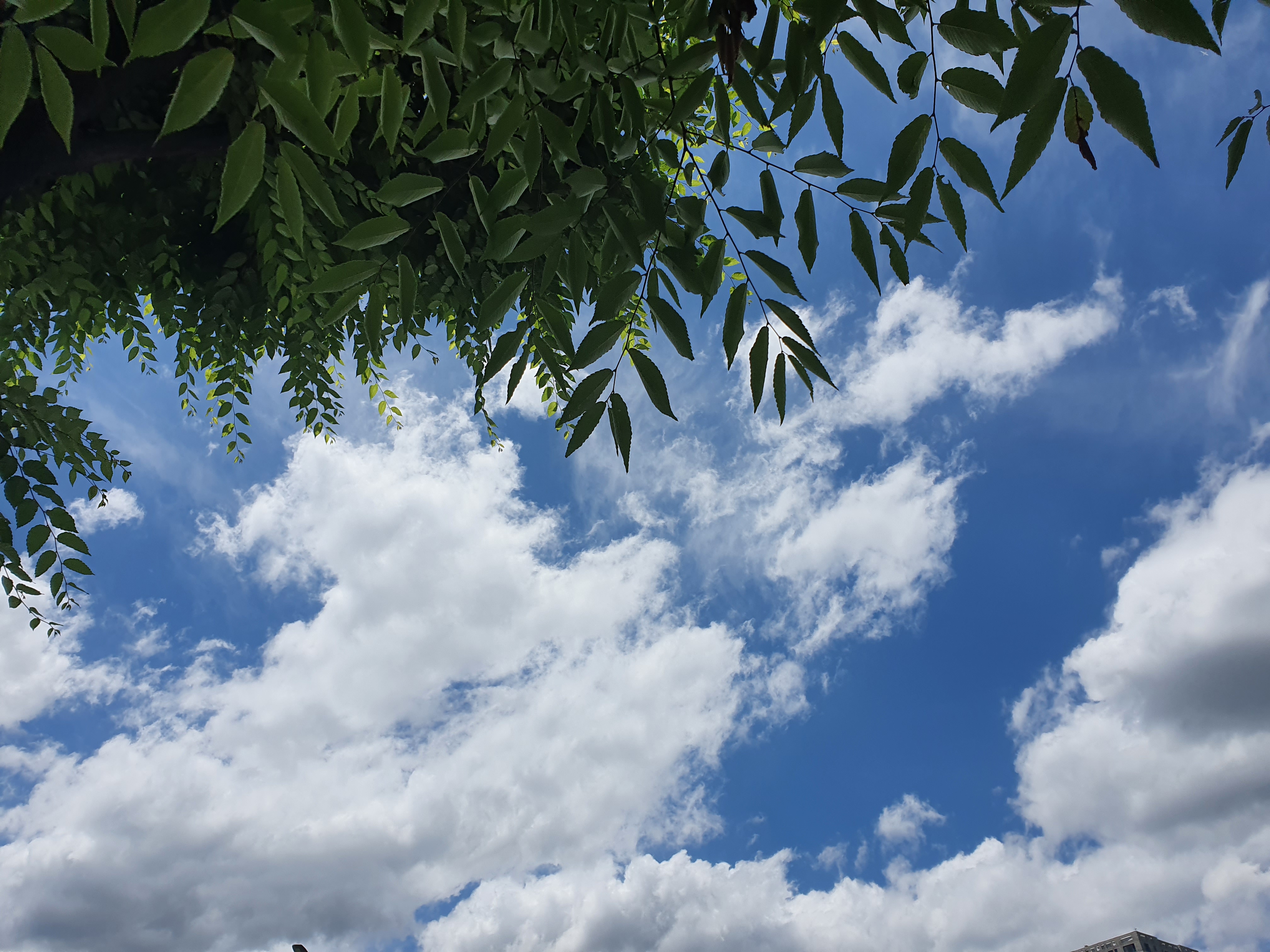 그리 높지도 낮지도 않은 하늘에 뭉개구름이 몇점 거기에 초록 나무까지 더해지니 보이지 않던 것도 잘보이게 되는 그런 날씨.